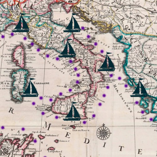 Поплывём от восточного побережья Испании к Лазурному берегу и далее, вокруг итальянского сапога и греческих бесчисленных островов, к Турции и Кипру, Леванту и дальше – вдоль всей северной Африки.