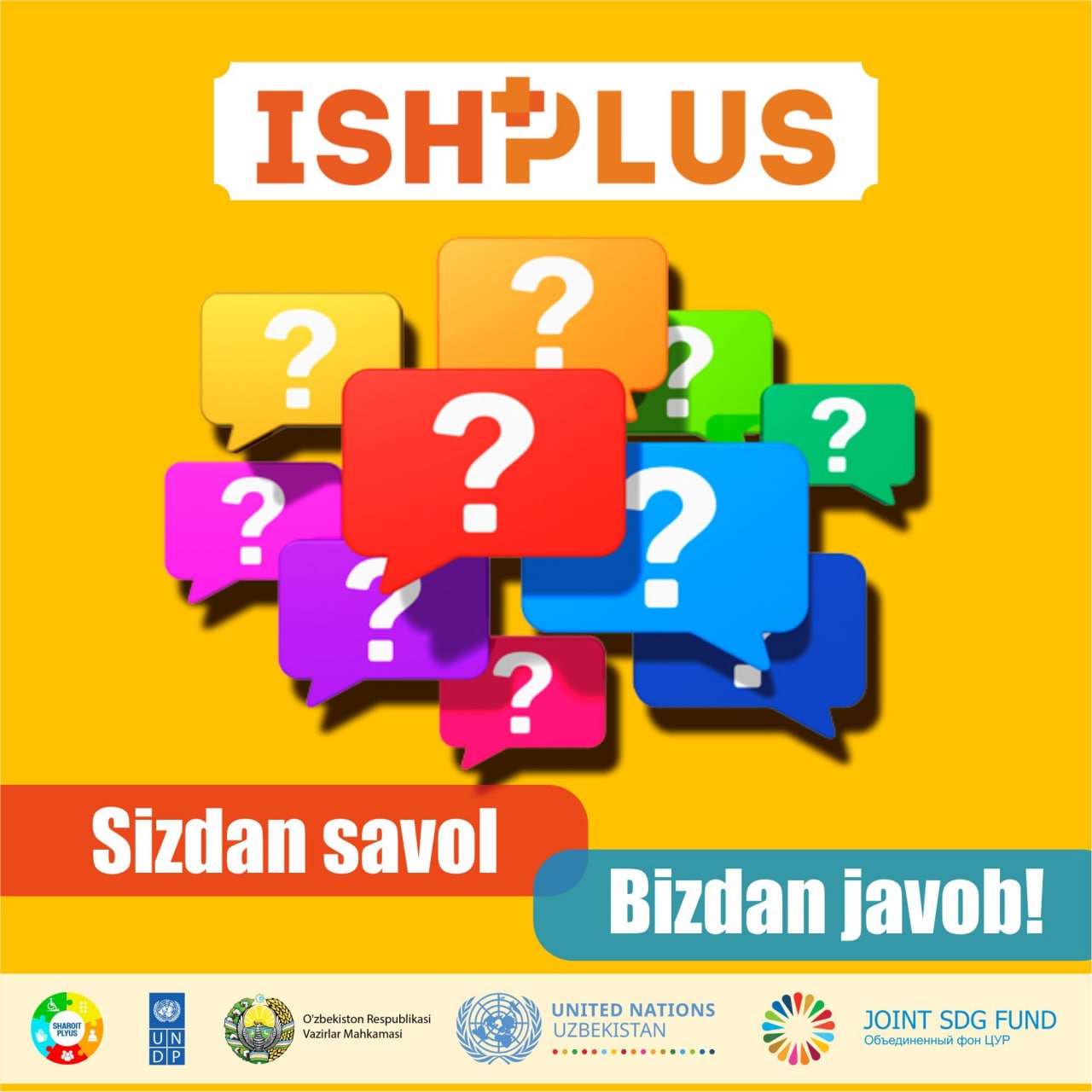ISHPLUS.UZ LOYIHASI DOIRASIDA SIZNING SAVOLLARINGIZGA BIZNING MUTAXASSISLARIMIZ JAVOB BERISHADI.
