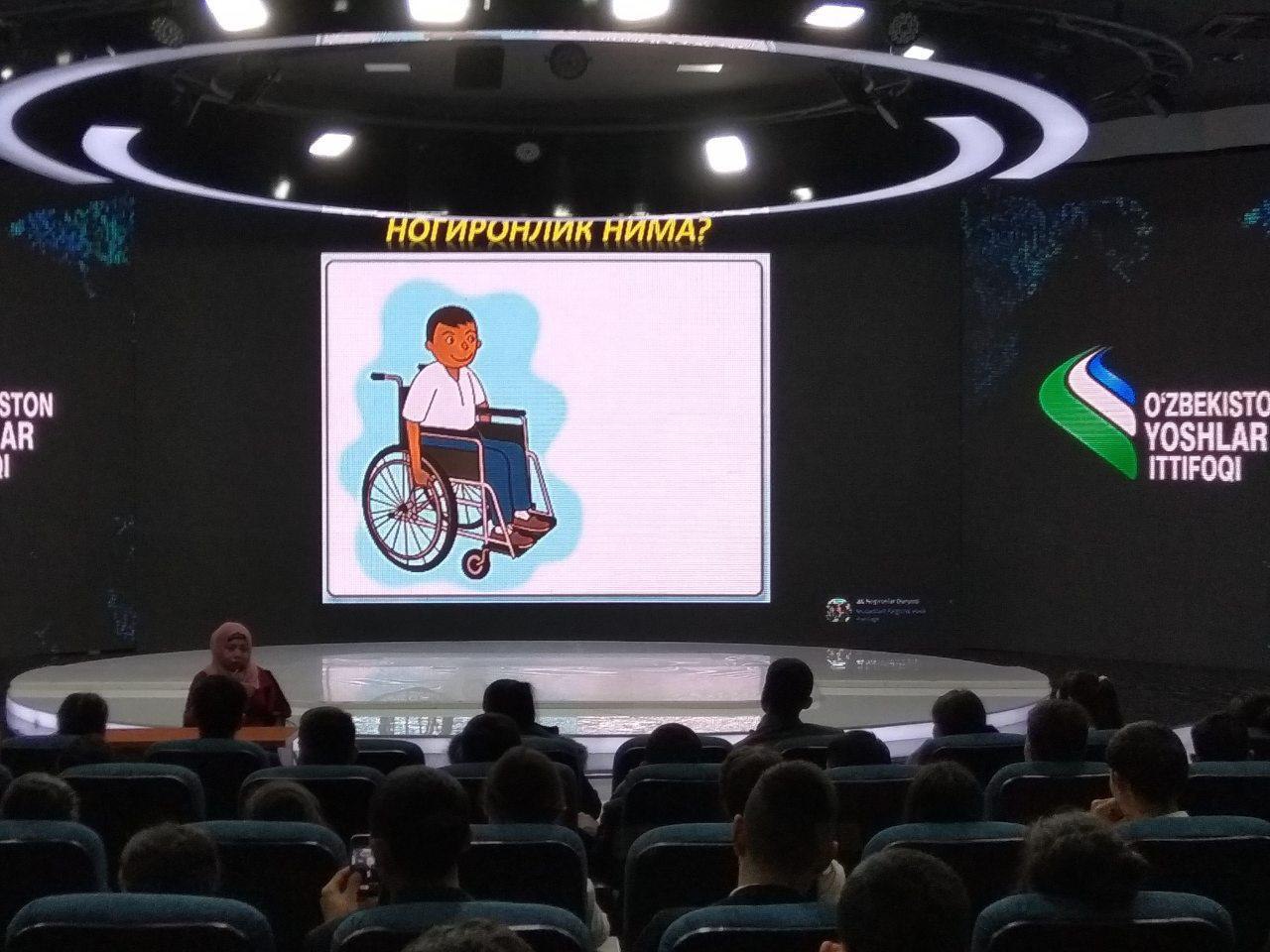 Today on 13 November 2018 a seminar was organised for the district school leaders of Tashkent city under the Youth Union of Uzbekistan on various themes in order to raise awareness about the activities of the Center of Disabled Youth and Children as well as to increase the activity of disabled youth in our society. At this seminar, NGO "Sharoit Plus" made a presentation on the theme of “Building an inclusive society”.