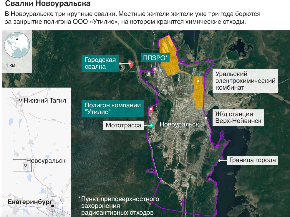 Росатому пора заняться Новоуральском, потому что пока госкорпорацию спасает только закрытый режим города, превращенного в химическую и радиационную помойку. Мы уже рассказывали о точке слива УГМК, которая так удачно оказалась в ЗАТО и избегает независимых проверок - благодаря чему на эту помойку, принадлежащую компании «Утилис», валят отходы запрещенных 1 и 2 класса опасности.