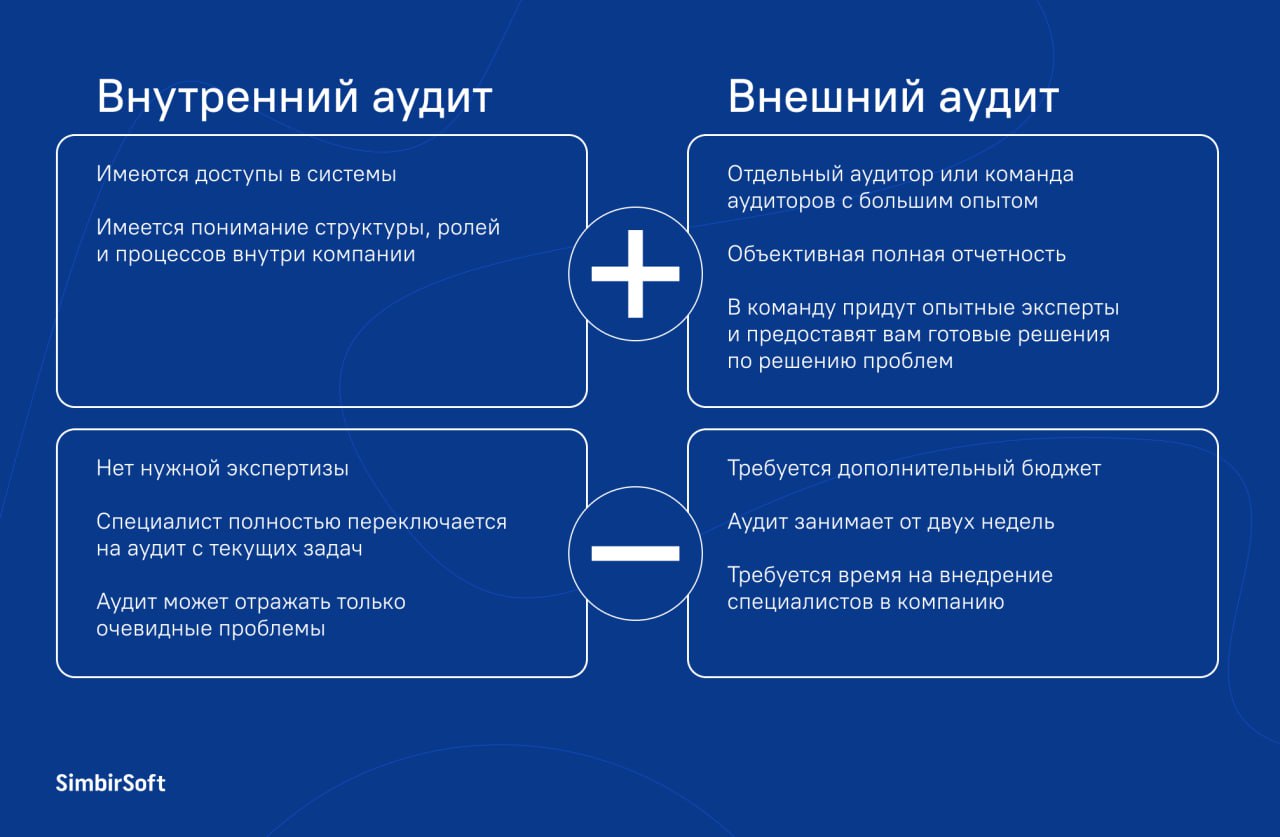 Аудиторами могут стать как внешние компании, так и сотрудники, обладающие необходимой экспертизой. Решить, что вам подойдет лучше, поможет таблица 👇 А бонусом публикуем чек-лист для внутреннего экспресс-аудита 👁