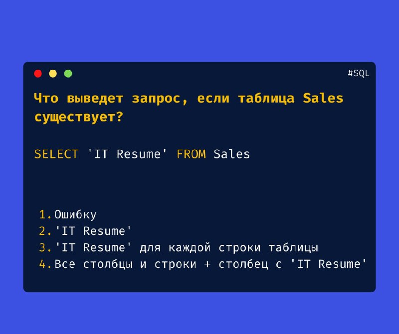 ❓Новая задача по SQL: Что выведет запрос, если таблица Sales существует?
