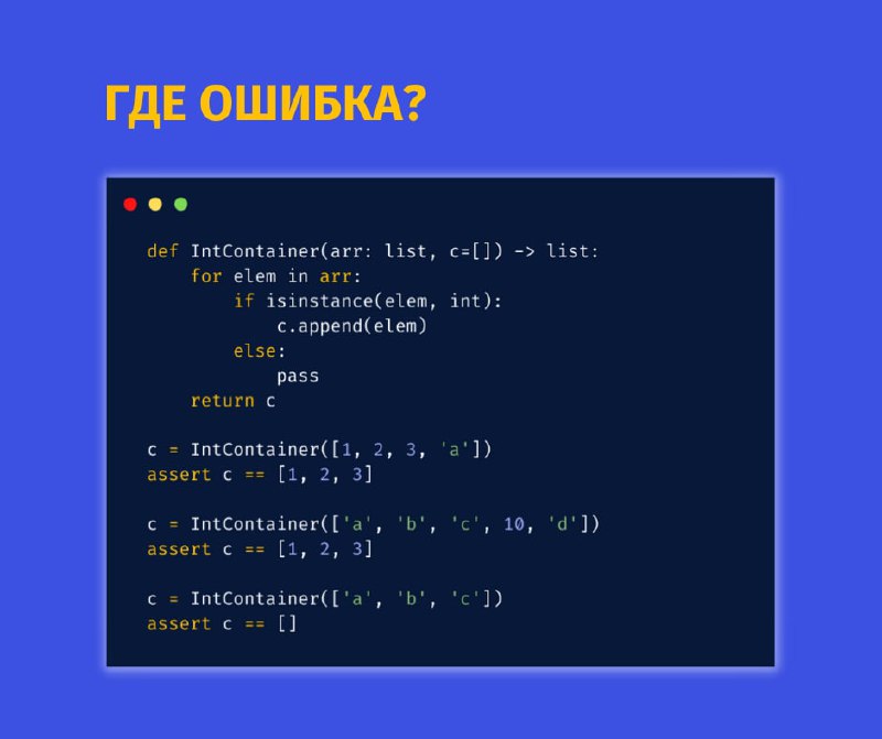 Мы подготовили для вас кусок кода, в который закралась очень распространенная ошибка среди программистов на Python. Попробуйте ее найти 😉