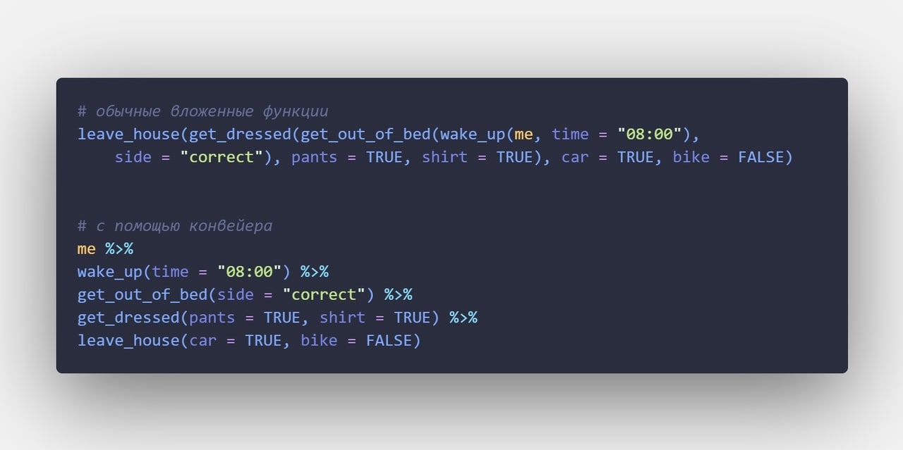 В языке R предусмотрены конвейеры (pipe) для такой ситуации. Они позволяют: