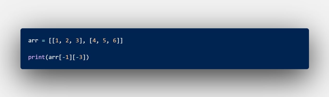 Сначала индексом -1 мы отбираем первый элемент с конца, т.е.: 4, 5, 6.