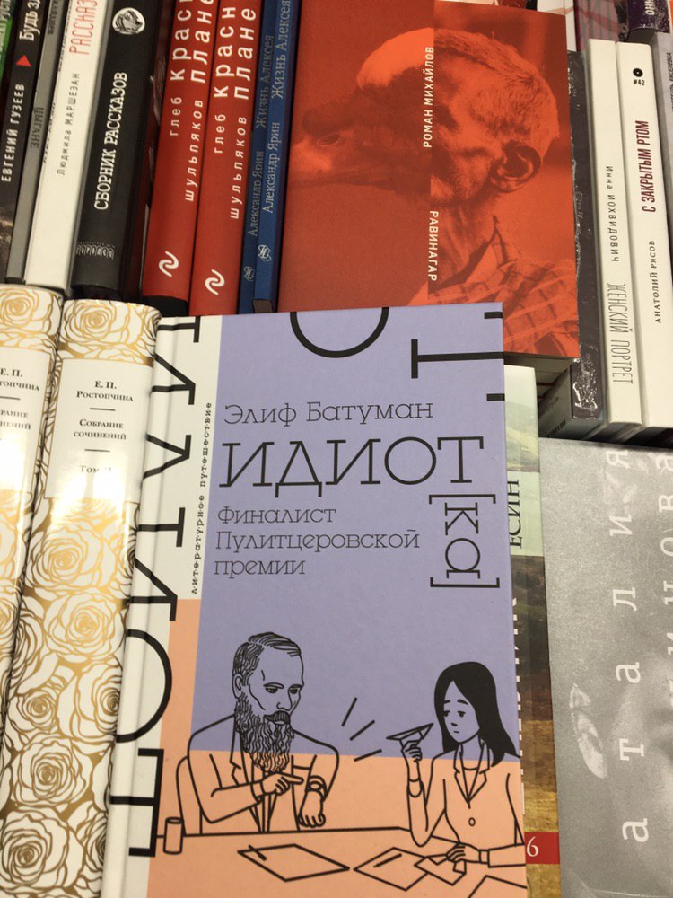 не опять, а снова: выудил — как видите, в неожиданном месте — переведенного на русский «Идиота» Элиф Батуман и недоумеваю: почему АСТ совсем не рекламирует эту писательницу; для чего топит нашего человека в Стэнфорде среди прочих своих новинок; зачем тогда вообще покупали права — если не хотят соединить автора и ее (не такую уж малочисленную, надо полагать) аудиторию? роман издан на отвратительной, как теперь принято, бумаге (ладно цвет: открываешь, и буквы плывут); на задней обложке — цитата из моей (не единственной, надеюсь) рецензии на «Бесов» — очень славную книгу, ради которой не грех временами драть горло.