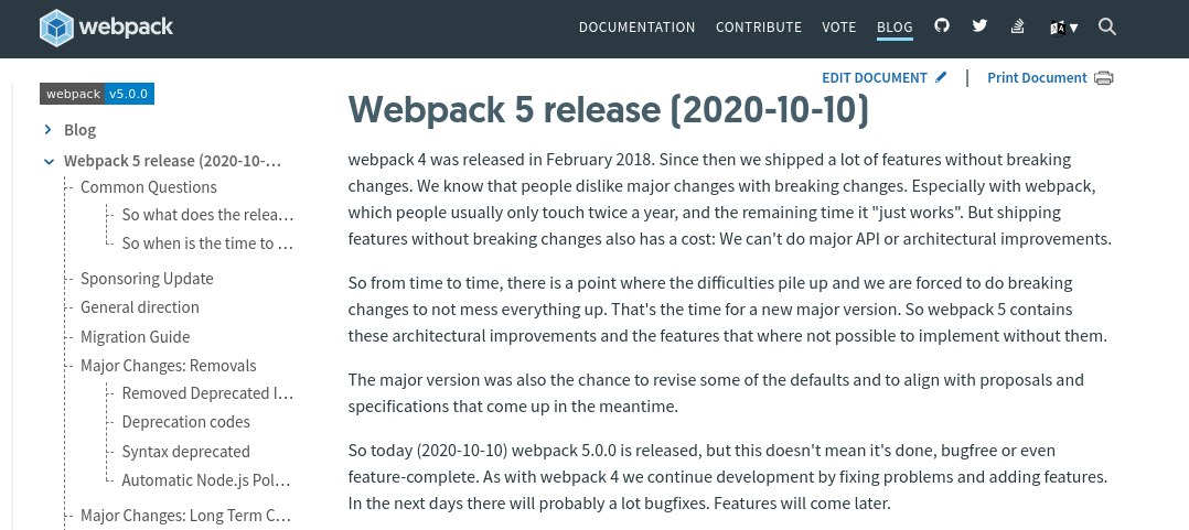 Webpack 5 release. Очень много изменений: начиная от подкапотных (улучшенное кеширование, tree-shaking идр), заканчивая изменениями в работе с асетами, плагинами, выпиливанием полифиллов для Node.js и многое другое. Релиз реально большой, поэтому welcome в release notes → https://bit.ly/310ptQ5
