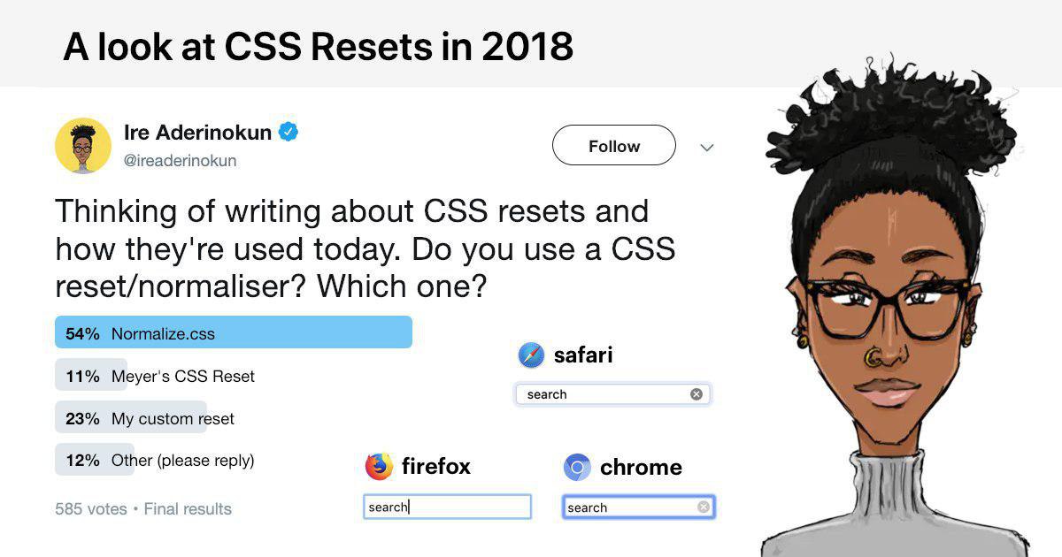 A look at CSS Resets in 2018. Взгляд на дефолтные стили в современных браузерах и мысли о том, стоит ли использовать нормализацию CSS в 2018 → http://bit.ly/2SGb2do