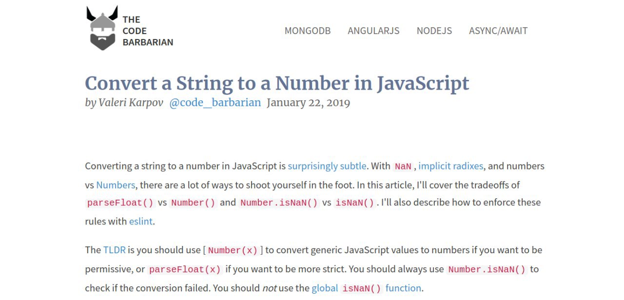 Convert a String to a Number in JavaScript. Годная заметка Валерия Карпова о преобразовании строк в числа в js и о том, как при этом не выстрелить себе в ногу 😀 → http://bit.ly/2sUkRK8
