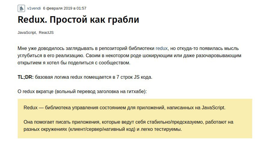 React Hooks — Slower than HOC?. Интересный тест производительности, сравнивающий быстродействие Hooks и HOC на примере рендеринга 1000 текстовых нод → http://bit.ly/2DB3m6C. Еще примечательна тем, что в комментарии пришел Ден Абрамов и объяснил как нужно было использовать хуки в бенчмарке и что из этого вышло → http://bit.ly/2Gnw6DA