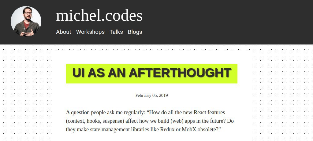 UI AS AN AFTERTHOUGHT. Интересная заметка о том, почему нужно разделять логику и представление, что лучше использовать для этого и о том, как все смешалось в современных фреймворках → http://bit.ly/2BrIm1B