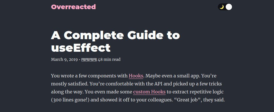 A Complete Guide to useEffect. Крутой лонгрид от Дена Абрамова о сценариях использoвания useEffect, подводных камнях и различиях реализации с методами классов → http://bit.ly/2UAFVS0