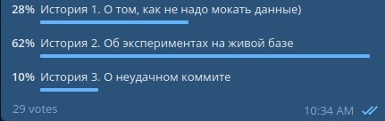Объявляем результаты конкурса: победила история 2 (об экспериментах на живой базе, и важности бекапов 😁). В ближайшее время свяжемся с победителем, чтоб доставить сладкий приз 🤗. От вас же интересно услышать, зашел ли такой формат? (ставьте реакции) и не забываем что поддержать нас можете по ссылке 👉 http://bit.ly/2rTE0v9