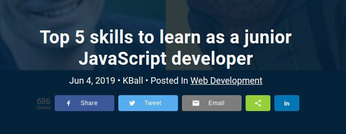 Top 5 skills to learn as a junior JavaScript developer. Грамотная статья о том, как стать junior-разработчиком и куда двигаться потом → http://bit.ly/2K8yXSw