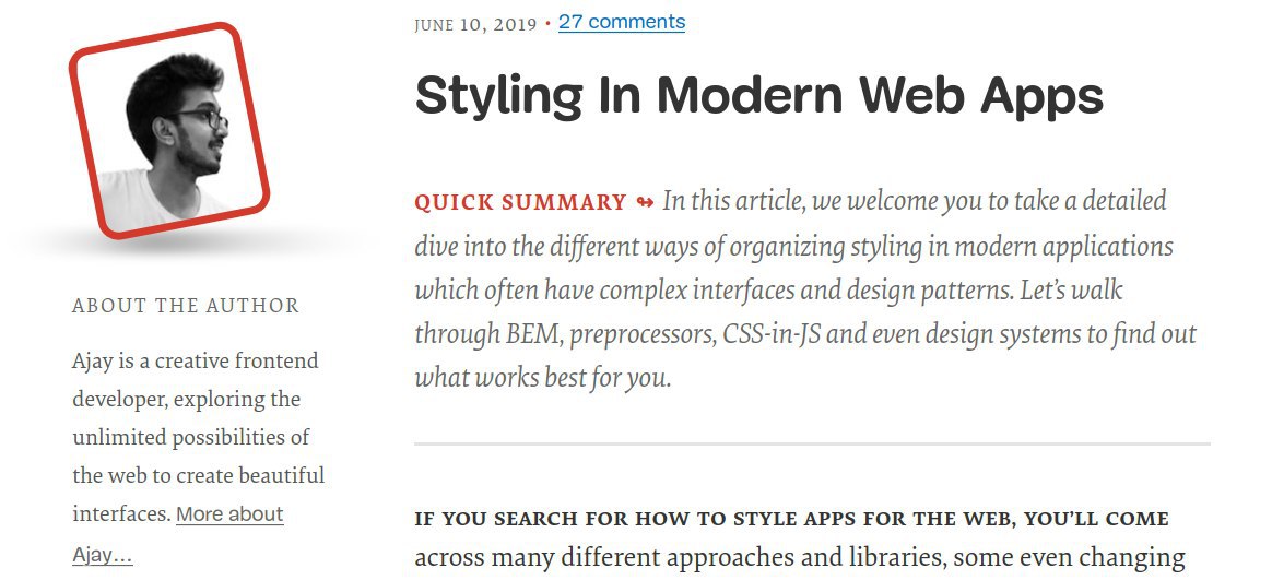Styling In Modern Web Apps. Крутой пост с обзором современных способов стилизации приложений. BEM, SCSS, CSS-in-JS и Design systems. Очень рекомендую → http://bit.ly/2XoAutW
