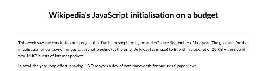 Wikipedia's JavaScript initialisation on a budget. Подробный рассказ о том, как инженеры wikipedia добились уменьшения бандла → http://bit.ly/2oSuBWv