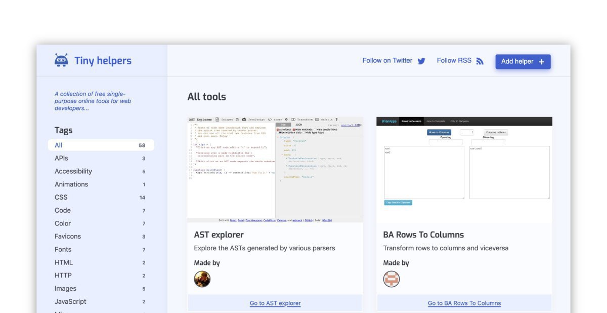 Tiny helpers. Крутой набор тулзовин для веб разработки от Stefan Judis → http://bit.ly/2NHvuui