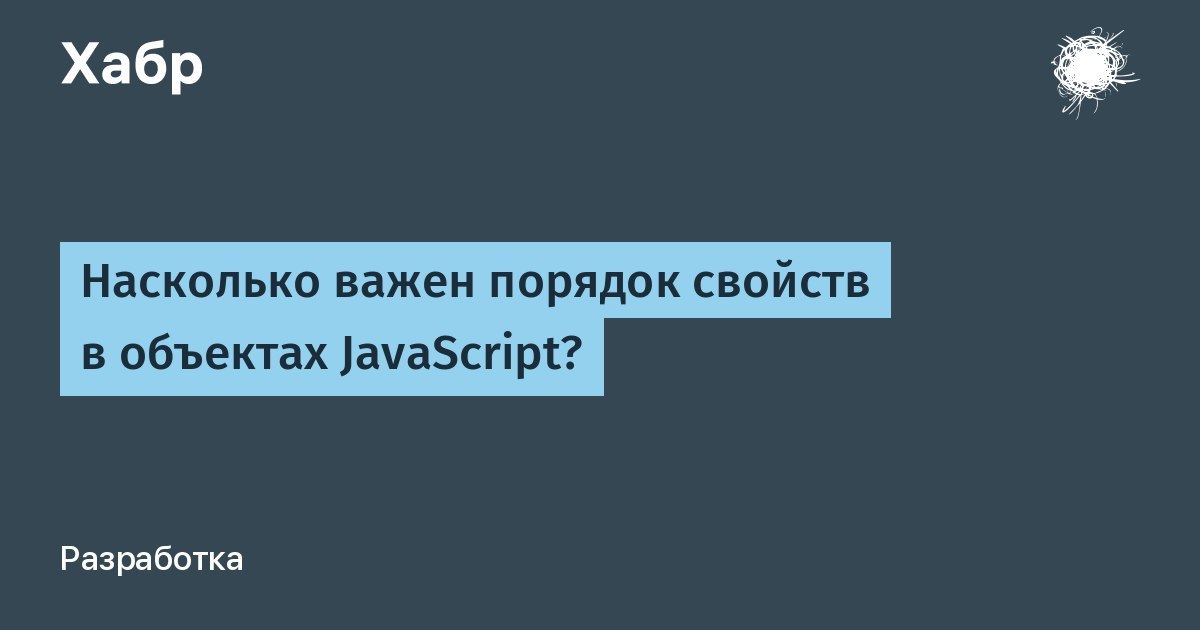 Насколько важен порядок свойств в объектах JavaScript?. Интересная заметка о важности порядка добавления свойств в объект для перформанса → http://bit.ly/2vIyCA1