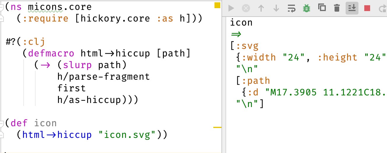 Таким образом имея несколько идентичных кусков Hiccup в разных компонентах и из разных неймспейсов, в скомпилированном JS этот код будет заменен ссылкой на один и тот же элемент.
