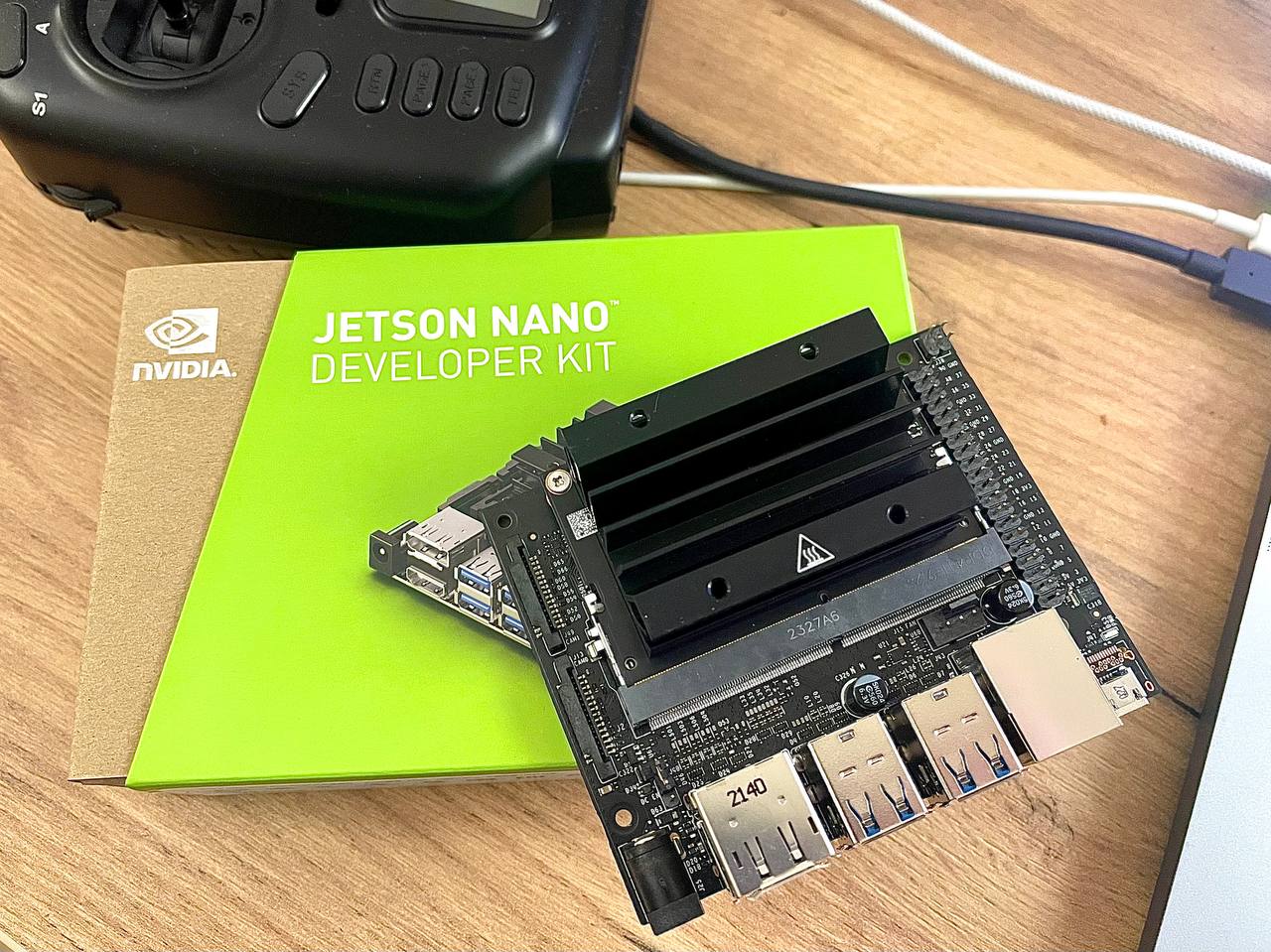 Замовляв собі зі Штатів набір розробника для Nvidia Jetson Nano. Це типу як відеокарта, але чисто під задачі штучного інтелекту. Сам набір розробника — це міні-компʼютер з Linux, а отам, на фото, під тепловідводом — сама плата.