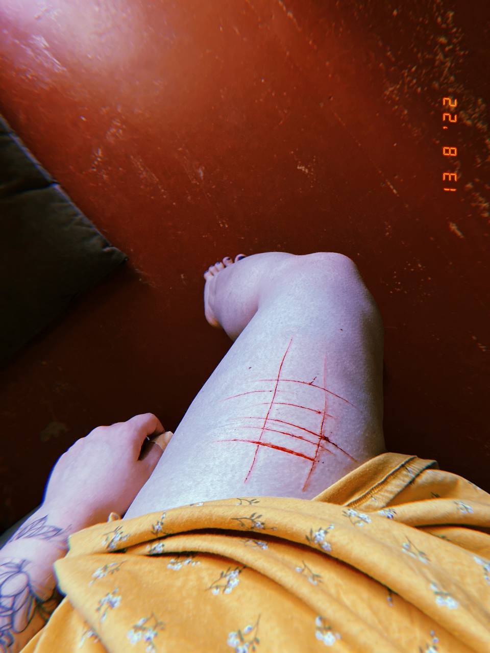 задумкой изначальной было попробовать нож, который я подарила перед отъездом, в честь годовщины. обсудили мы в общих чертах - я даже не знала, где будут порезы.