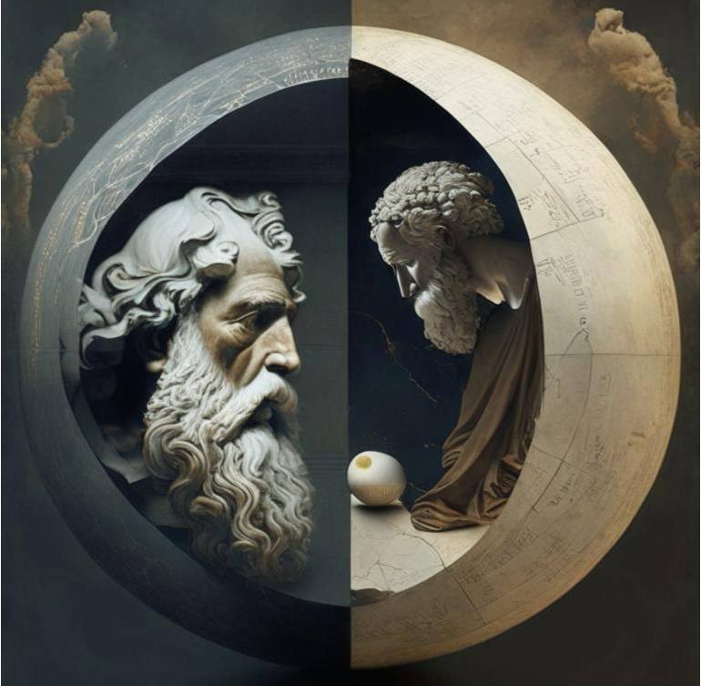 Это хорошо объяснил философ Эмпедокл. Согласно нему, жизнь появляется в результате сочленения отдельных органов. Представьте себе картины Иеронима Босха с изображением инфернальных миров. Где-то голова, где-то рука, где-то глаз. Всё это соединяется под действием любви в различные существа.