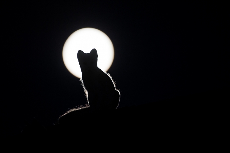 Brenhagen’s once-in-a-lifetime shot of an Arctic fox with a full moon.