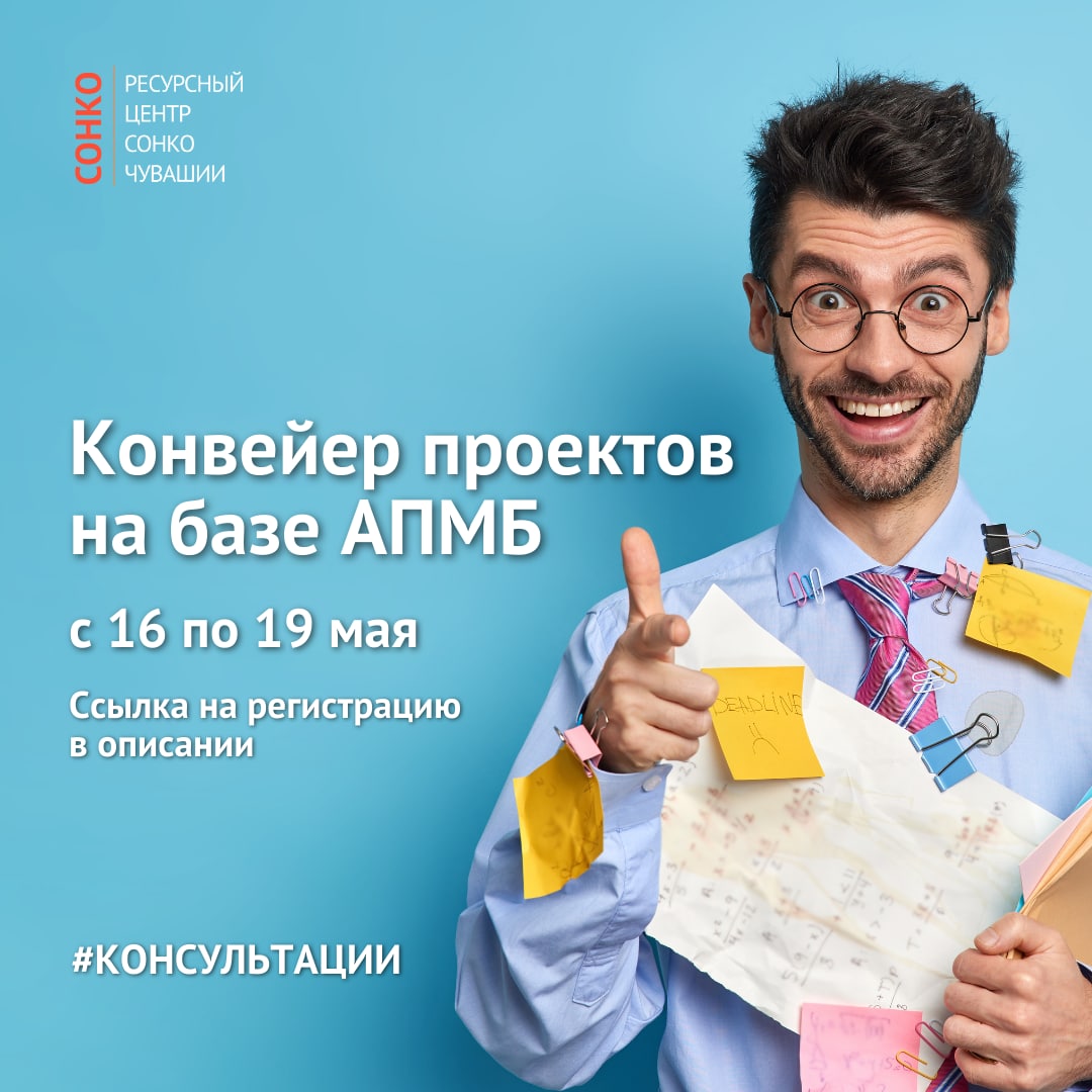 📆"Конвейер проектов" пройдёт на базе АПМБ: г. Чебоксары, Ленина 12Б с 16 по 19 мая в период с 13 до 17 часов, по 1 часу на 1 представителя СОНКО.