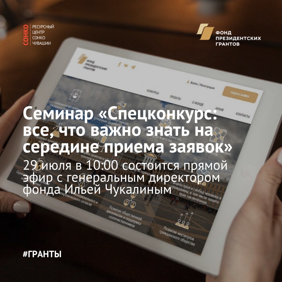 ✨29 июля в 10:00 (по МСК) генеральный директор Фонда президентских грантов Илья Чукалин проведет семинар в Новосибирске «Спецконкурс: все, что важно знать на середине приема заявок».