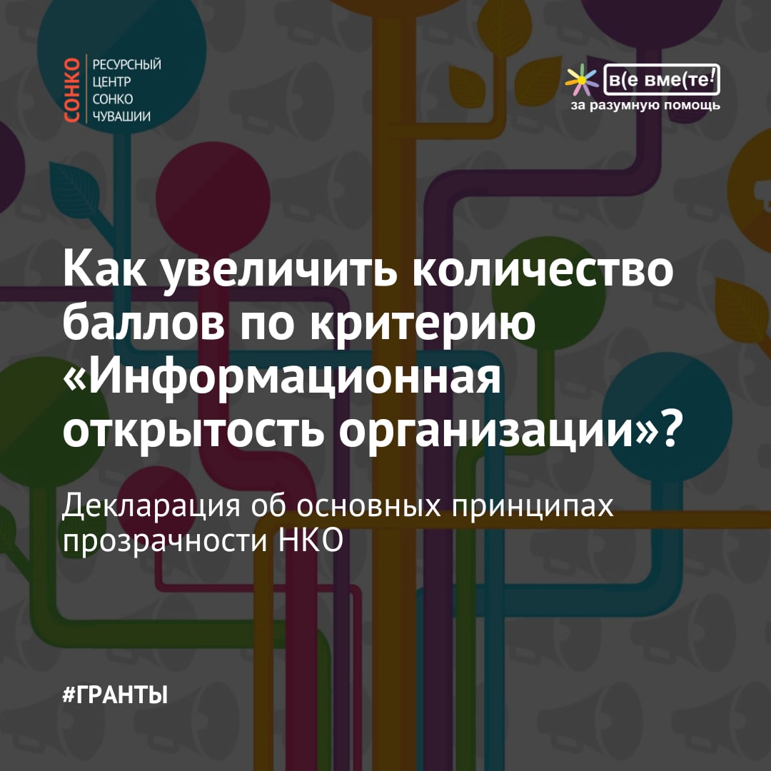 👆🏻При оценке проектов СОНКО на грантовых конкурсах многие организации получают низкие оценки по критерию «Информационная открытость». Чтобы получить больше баллов, можем предложить посмотреть на принципы прозрачности НКО и подписать Декларацию о прозрачности на сайте Ассоциации «Все вместе». В процессе заявки на подписанта с вами детально проработают все ваши ресурсы и порекомендуют коррективы.