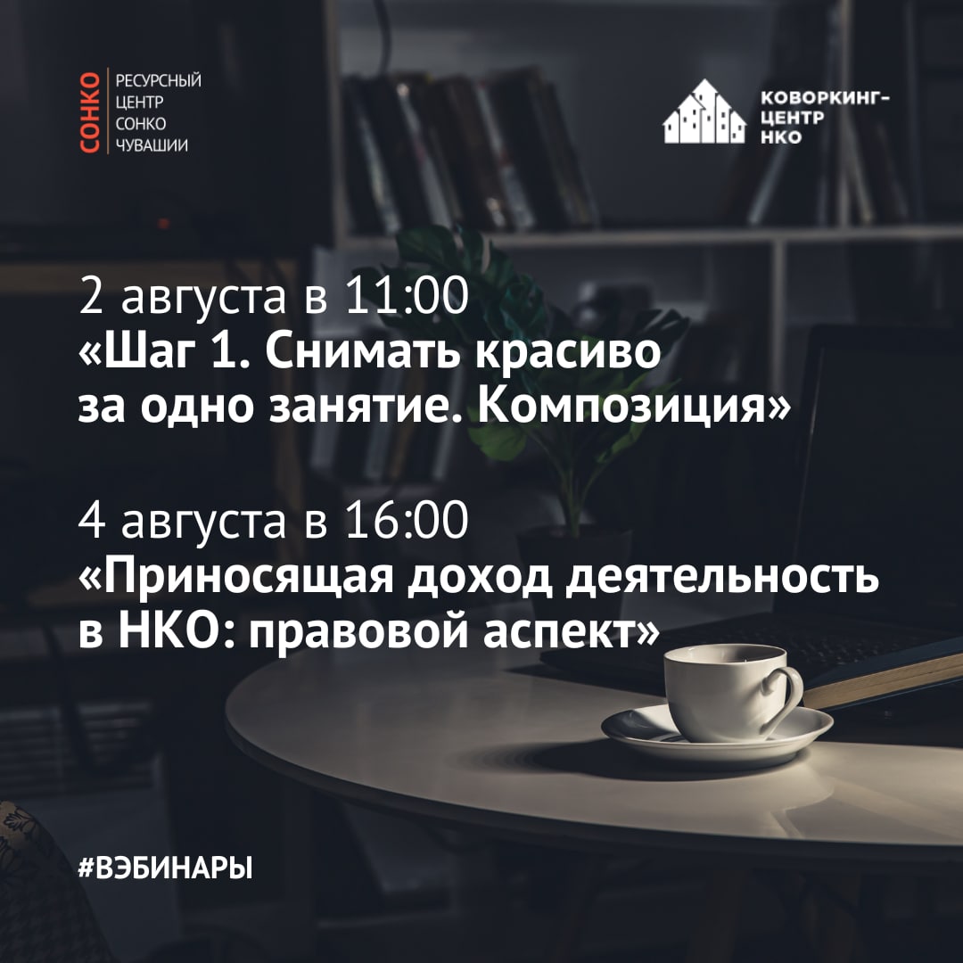 🔸4 августа 16:00 — Вебинар «Приносящая доход деятельность в НКО: правовой аспект»