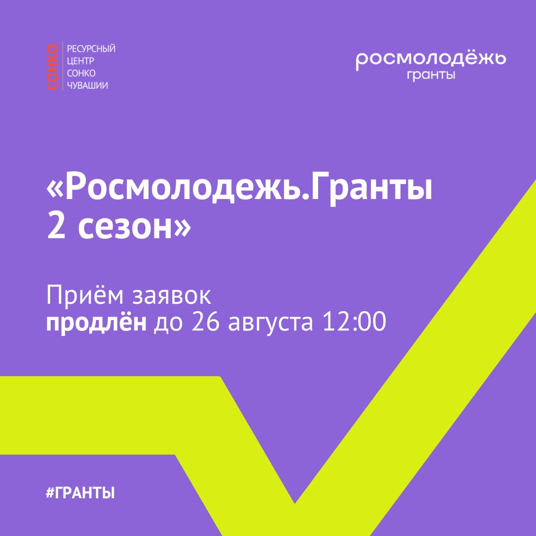 ⚡️Приём заявок на 2 сезон заочного конкурса Росмолодёжь.Гранты продлён до 26 августа 12:00