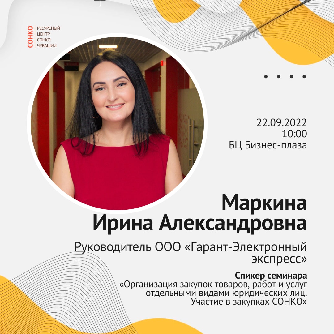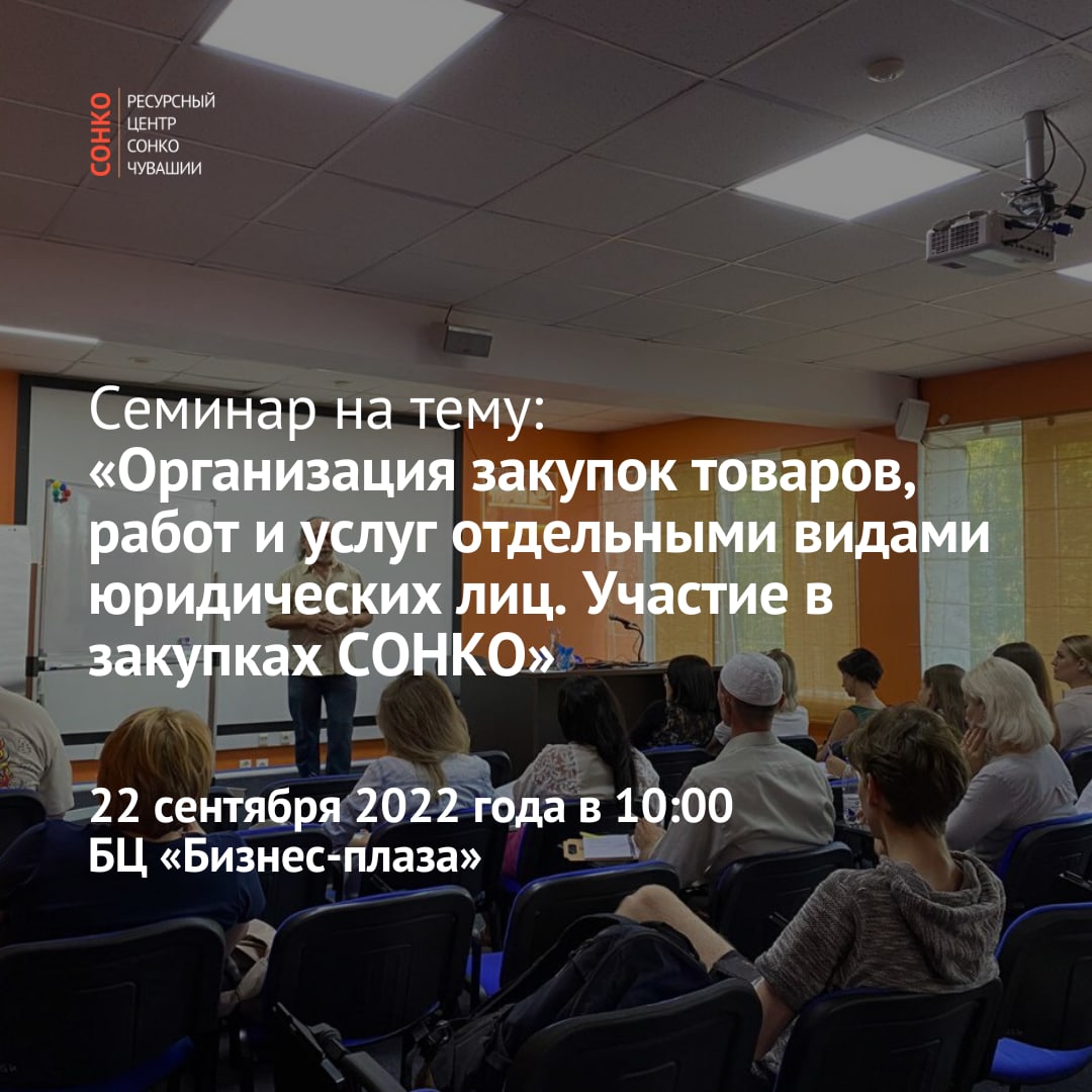 ⚡️22 сентября 2022 года в 10:00 в БЦ Бизнес-плаза (г. Чебоксары, Московский просп., 17, стр. 1, 3 этаж, конференц-зал компании «Гарант-Чебоксары») пройдет семинар на тему «Организация закупок товаров, работ и услуг отдельными видами юридических лиц. Участие в закупках СОНКО».