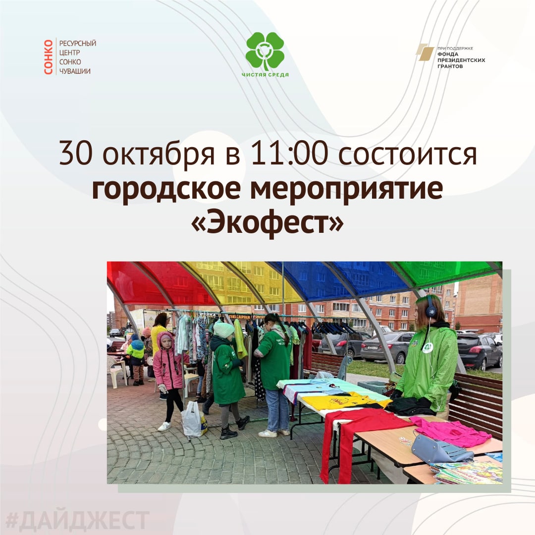 ⚡️30 октября с 11:00 до 14:00 в ДК Тракторостроителей г. Чебоксары состоится городское мероприятие «Экофест». Организатором фестиваля является Автономная некоммерческая организация «Чистая эко среда». Это уже четвертый Экофест, организуемый Чистой средой.
