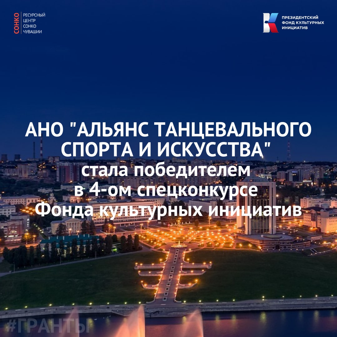 🔥 АВТОНОМНАЯ НЕКОММЕРЧЕСКАЯ ОРГАНИЗАЦИЯ «ЦЕНТР ПОДДЕРЖКИ И РАЗВИТИЯ КУЛЬТУРНЫХ ИНИЦИАТИВ «АЛЬЯНС ТАНЦЕВАЛЬНОГО СПОРТА И ИСКУССТВА» стала победителем в четвертом специальном конкурсе на предоставление грантов Президента Российской Федерации на реализацию проектов в области культуры, искусства и креативных (творческих) индустрий в 2022 году