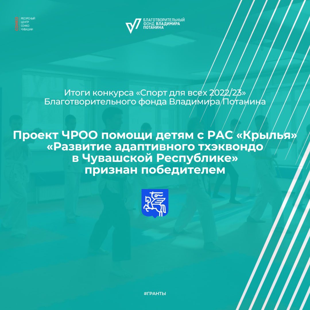 💫Из Чувашской Республики победителем стал проект ЧРОО помощи детям с РАС «Крылья» «Развитие адаптивного тхэквондо в Чувашской Республике», который получил поддержку в размере 1 997 314 рублей.