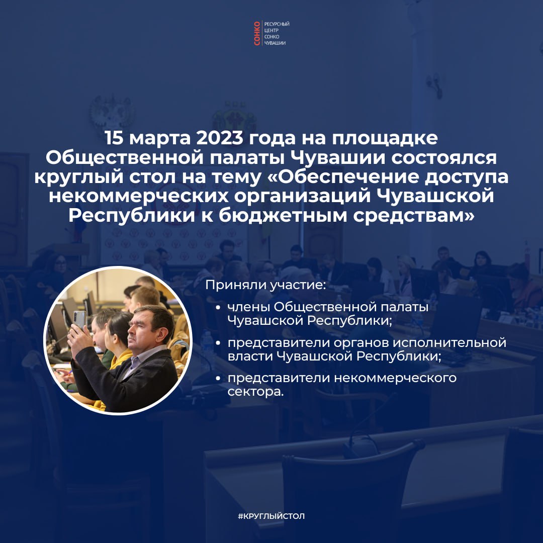 ⚡️15 марта 2023 года на площадке Общественной палаты Чувашии состоялся круглый стол на тему «Обеспечение доступа некоммерческих организаций Чувашской Республики к бюджетным средствам».