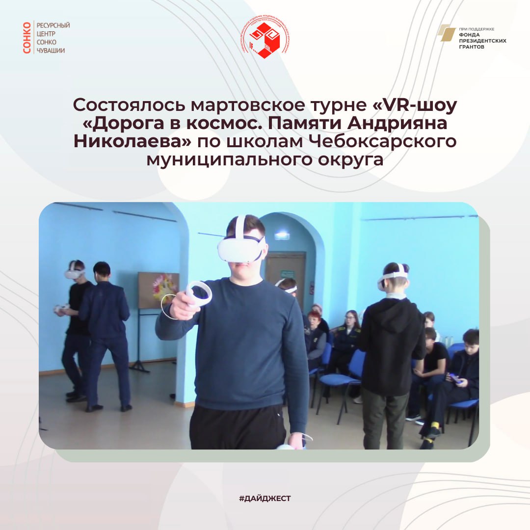 💭В марте состоялось турне с VR-шоу "Дорога в космос. Памяти Андрияна Николаева" по школам Чебоксарского муниципального округа. Команда проекта посетила Икковскую ООШ, Толиковскую СОШ и Кугесьский лицей. В мероприятиях приняло участие 406 школьников.