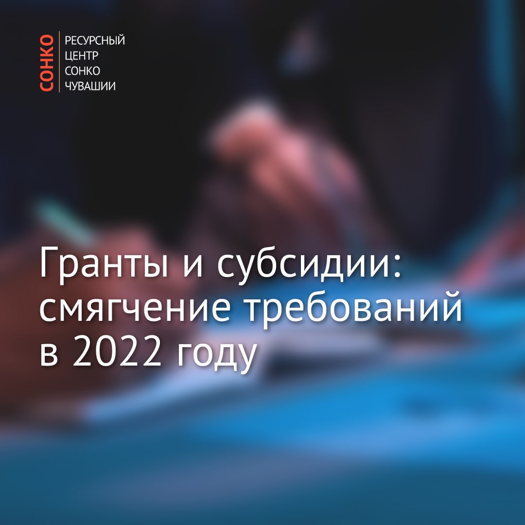 💭Постановлением Правительства Российской Федерации от 5 апреля 2022 г. № 590 «О внесении изменений в общие требования к нормативным правовым актам, муниципальным правовым актам, регулирующим предоставление субсидий, в том числе грантов в форме субсидий, юридическим лицам, индивидуальным предпринимателям, а также физическим лицам – производителям товаров, работ, услуг и об особенностях предоставления указанных субсидий и субсидий из федерального бюджета бюджетам субъектов Российской Федерации в 2022 году» предусмотрено смягчение требований в рамках предоставления государственных субсидий и грантов СОНКО в 2022 году, в том числе: