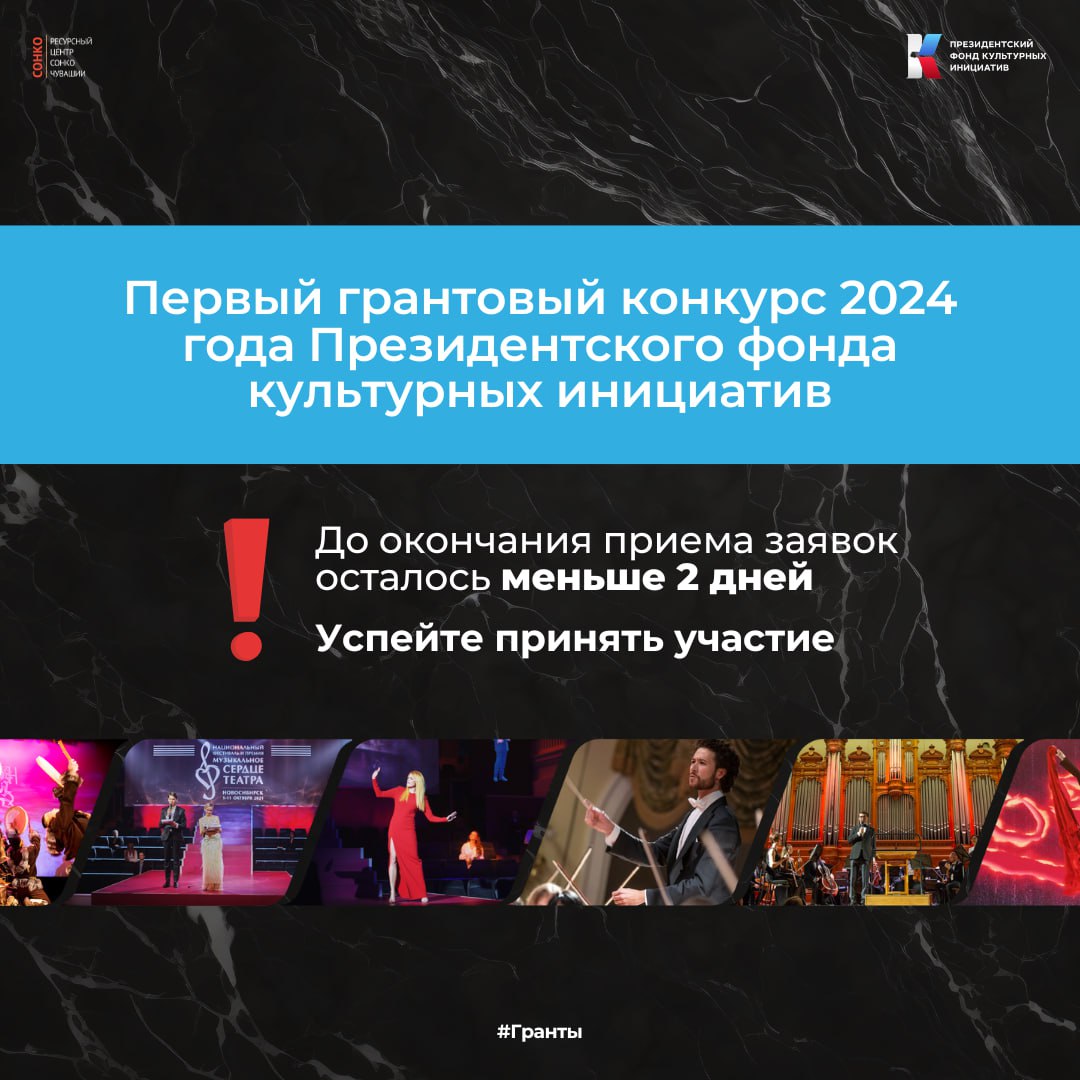 ⚡️До окончания приема заявок на Первый грантовый конкурс 2024 года Президентского фонда культурных инициатив осталось меньше 2 дней