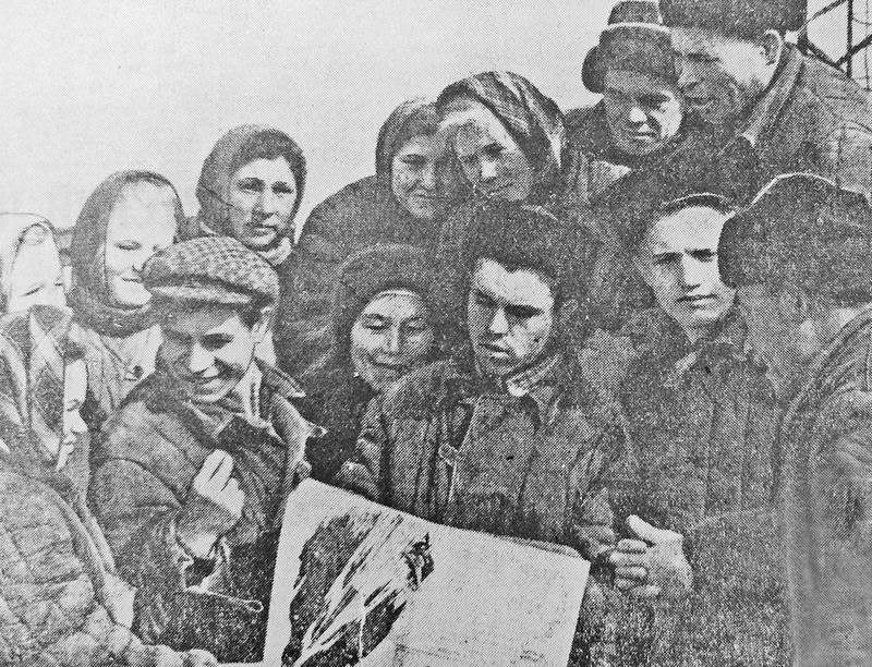Из архива «Советской Чувашии». Строители чебоксарского СУ-21 стройтреста № 1 читают в «СЧ» новость о первом космонавте. Фото Петра Ефремова. 13 апреля 1961 года.