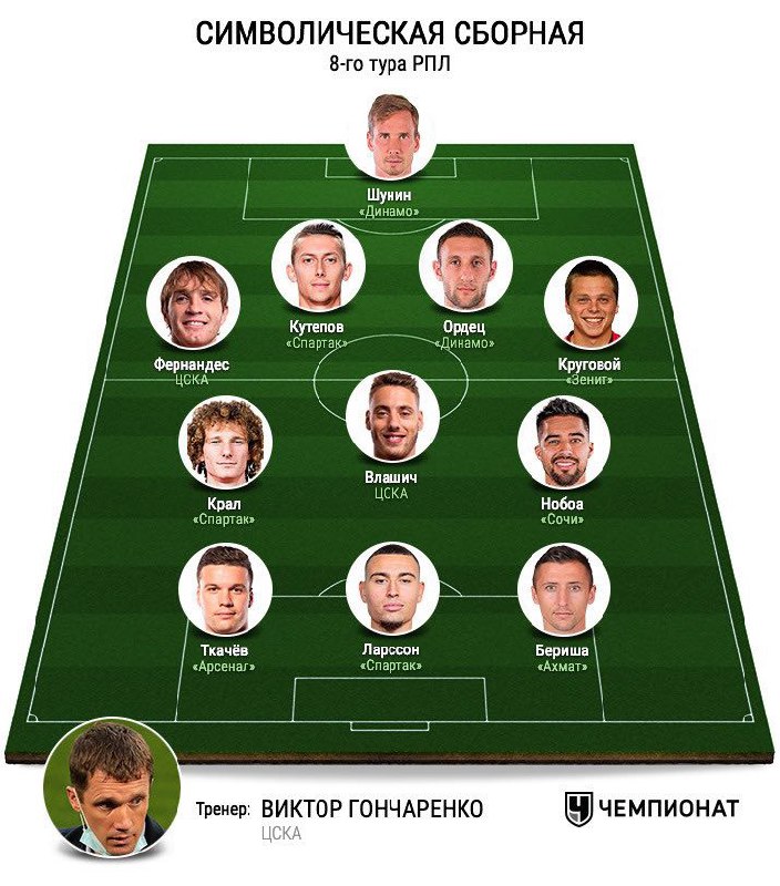 Давно такого не было, чтобы в сборной тура оказалось сразу три спартаковца. И все по делу. Недостаёт пожалуй тут только Зобнина, который выдал очередной зажигательный матч на бровке.