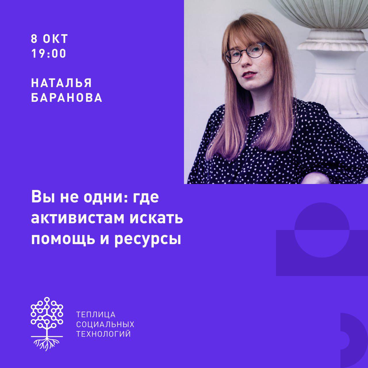 Завтра наша подруга, главная редакторка “Теплицы социальных технологий” Наталья Баранова проведет в Открытом пространстве встречу, которую назвала “Вы не одни”.