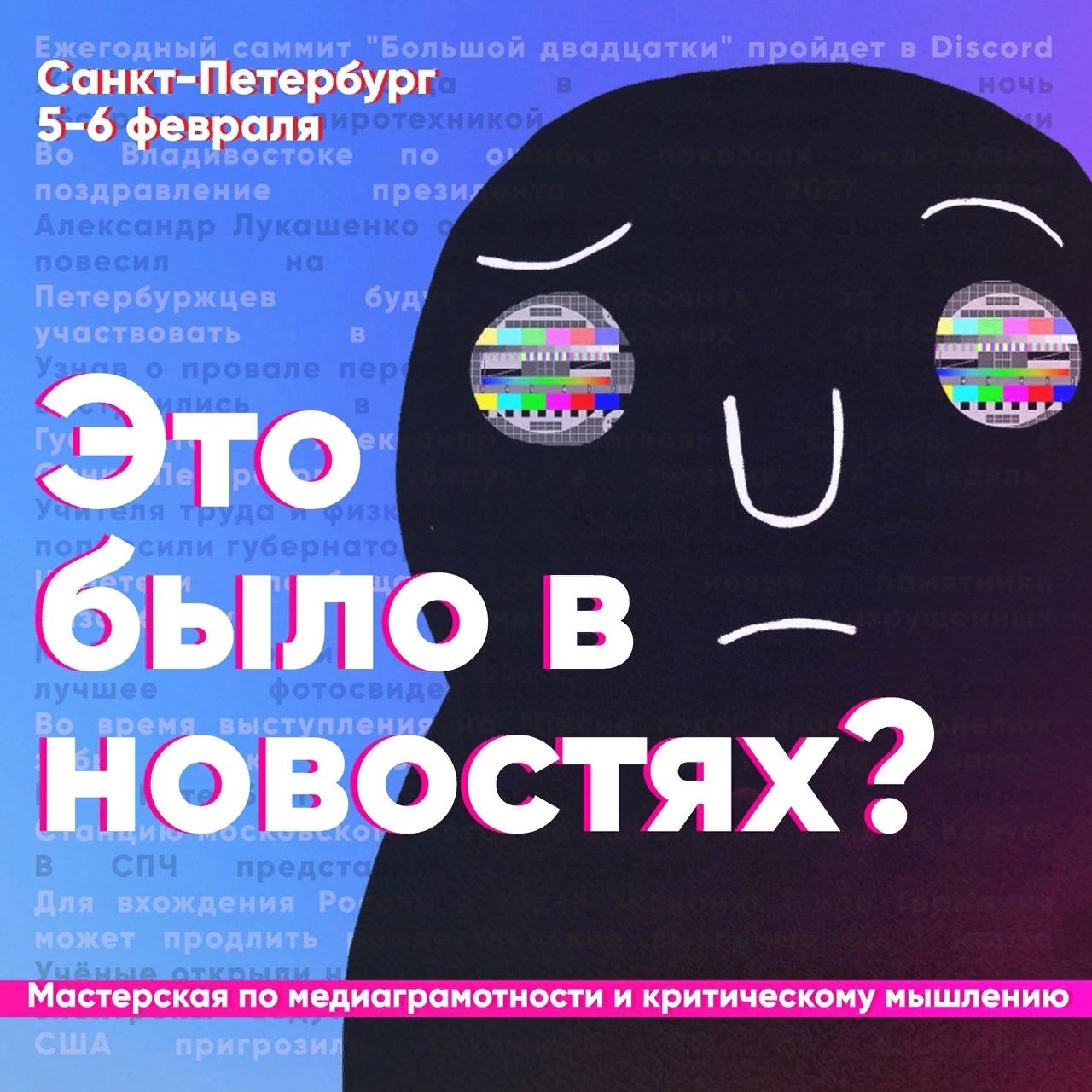 С 5 по 6 февраля в Санкт-Петербурге пройдёт мастерская для молодёжи и студентов «Это было в новостях?», посвященная медиаграмотности, критическому мышлению и проектной работе.