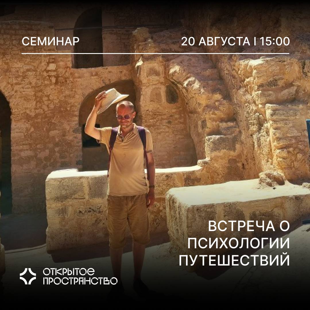Воркшоп будет проходить на стыке практической психологии, культурологии и творческой писательской мастерской. Приглашаются как любители традиционных путешествий (гиды, туристы, релоканты или те, кому есть что рассказать про путешествия), так и те интроверты, которые путешествуют только в своих и чужих дневниках, снах и мечтах… Будет возможность как поделиться своими историями, мыслями и чувствами, так и поговорить про путешествия в культуре.