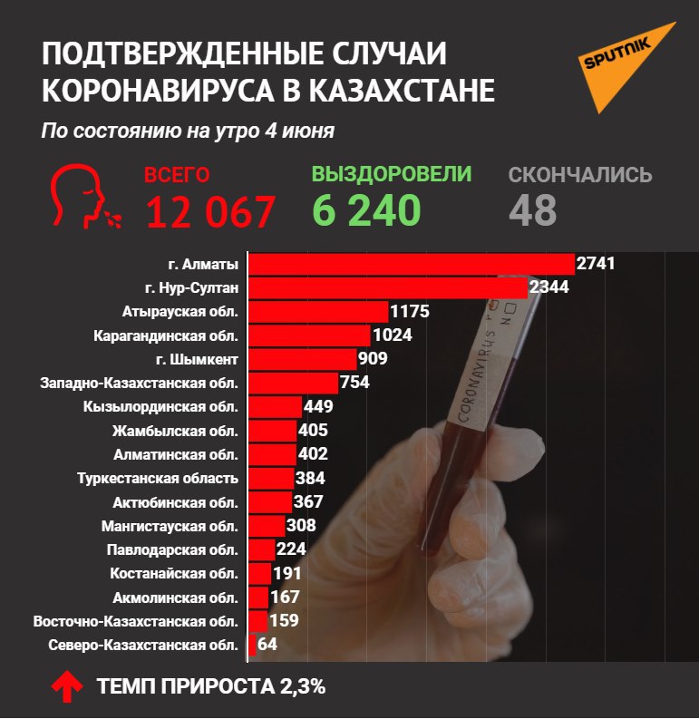 ▪️Всего на утро 4 июня зарегистрировано 12 067 случаев