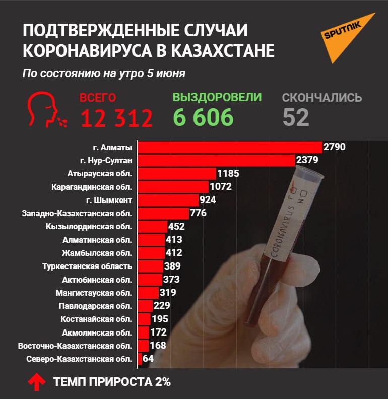 ▪️Всего на утро 5 июня зарегистрировано 12 312 случаев