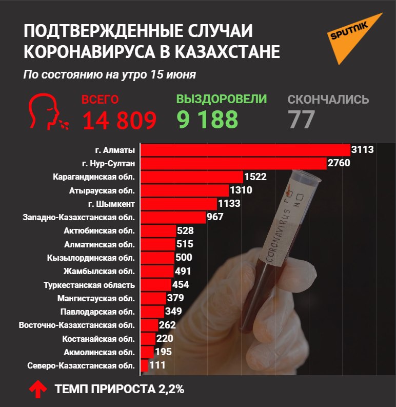 ▪️Всего на утро 15 июня зарегистрировано 14 809 случаев