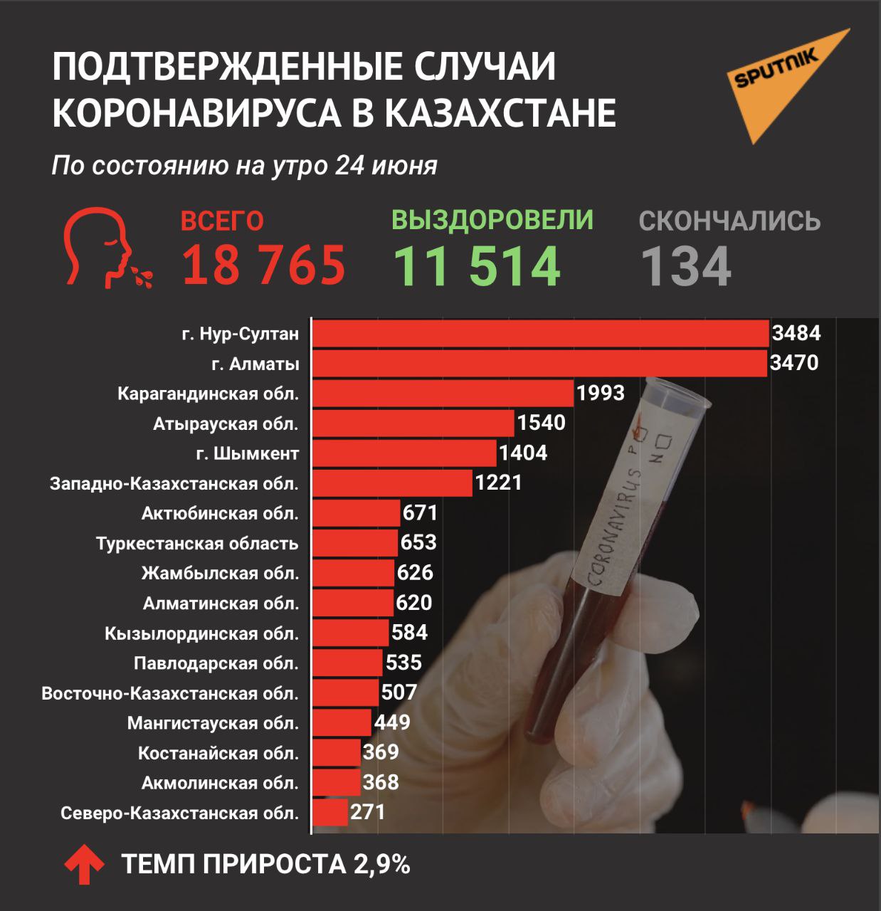 На сегодня Нур-Султан на первом месте по количеству зараженных коронавирусом (3 484 человека).
