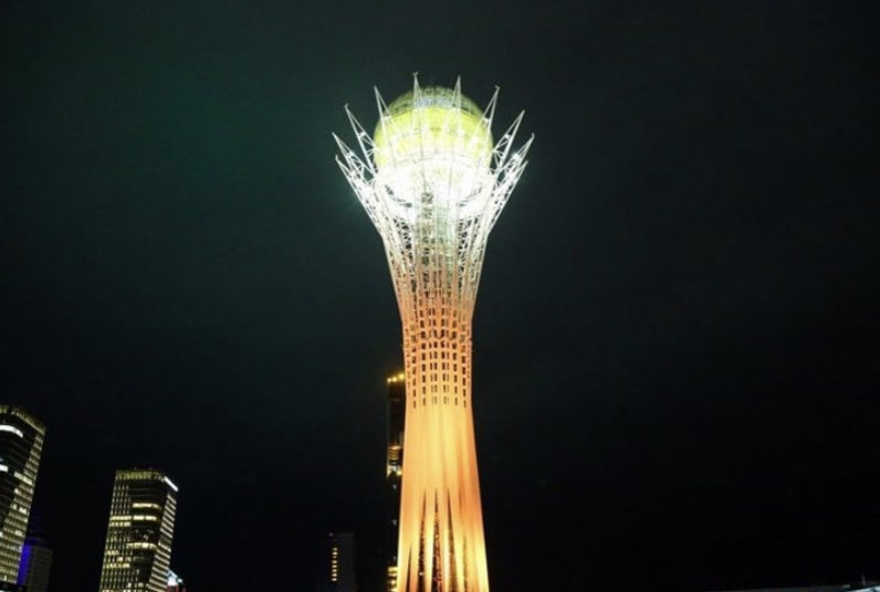 Достопримечательности в Нур-Султане сегодня вечером подсветили оранжевым
